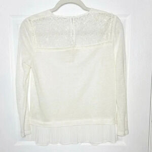 REBECCA TAYLOR Linen and Lace Blouse Pleated Hem Size XS Elevated Basic Preppy