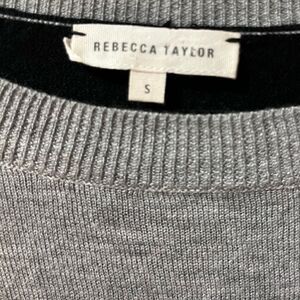 REBECCA TAYLOR Colorblock Slub/Perforated Combo Sweater Grey White Black Small