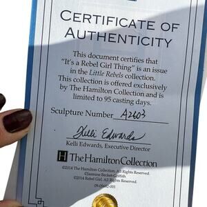 “ IT’S A REBEL GIRL THING” figurine from the little rebel collection. The Hamilton collection, Jasmine Beckett- Griffith 2014. Biker theme.