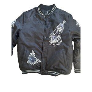 REBEL MINDS Men's Fly High Black Graphic Bomber Jacket Size XL