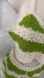 Chic crochet skirt set in green and cream. Perfect for a stylish, casual look.