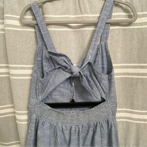 REBELLION / Chambray & White Striped Wide Leg Cropped Sleeveless Jumpsuit Size L