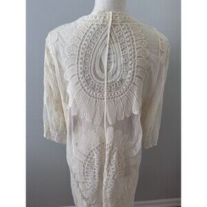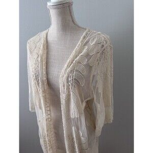 REBELLION Lace Floral Duster Robe Beach Cover Festival Kimono Boho Cardigan L