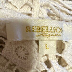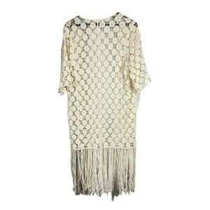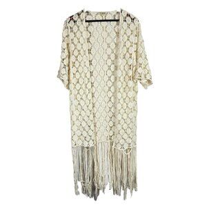 REBELLION Women’s Large Crocheted Vest Boho Cream Knit Long Cardigan