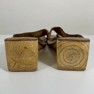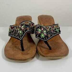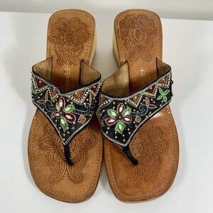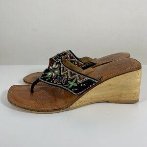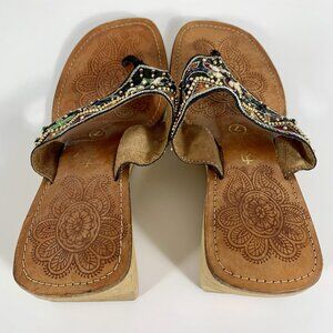 REBELS Beaded Open Toe Flip Flop Bamboo Wedge Block Sandals Size 7 Boho Slip On