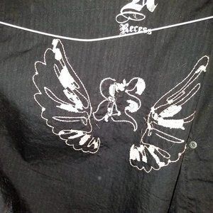RECESS SHIRT short SLEEVE * BEADED DESIGN on back * 100% cotton Black and Grey * Pre-owned * Size M