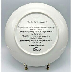 RECO John McClelland 1982 Mother Goose Little Jack Horner 8" Plate w Box & COA