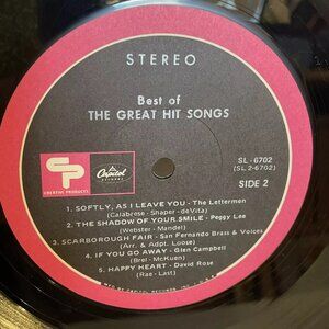 RECORD ONLY Best Of The Great Hit Songs (Vinyl) Creative Products SL-6702 Good+. Used with wear and blemishes see pictures sold as is. NO COVER. Record has scratches some may affect play.