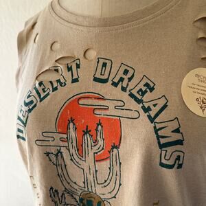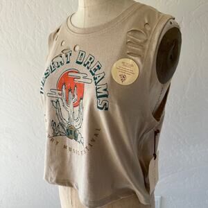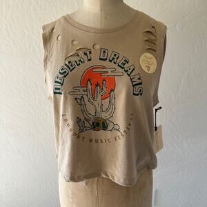 RECYCLED THREADS | Desert Dreams Music Festival Distressed Crop Tank Boho NEW L