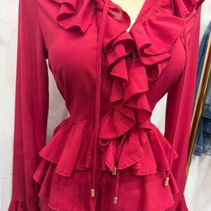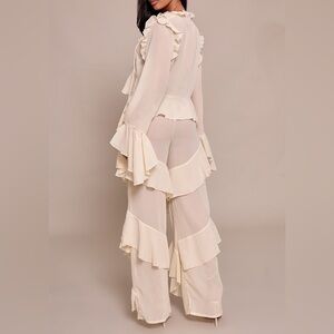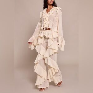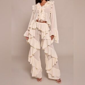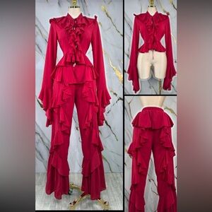 Step out in style with this elegant ruffled pants setPerfect for any occasion, this piece combines sophistication with a modern flair. The flowing ruffles add a touch of drama, making it a standout addition to your wardrobe.