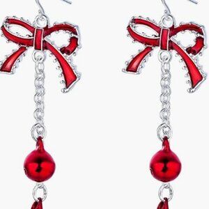 Holiday Red Bow Knot Jingle Tassels Earrings Silver Plated Women Girls Holiday Gift