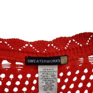Women's red butterfly sleeve knit sweater by Sweater Works. 100% Acrylic. Size Large. B5-B1