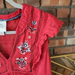 RED Bohemian 100% Cotton Ruffle Sleeved V Neck Dress. SIZE Medium