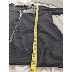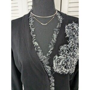 RED Brand Sweater Women's 2X Black V Neck Cardigan 3D Flowers Leopard Chiffon