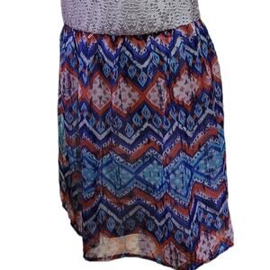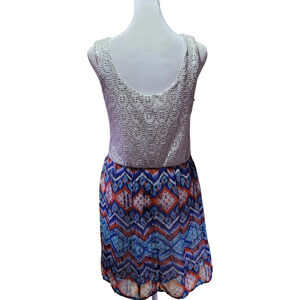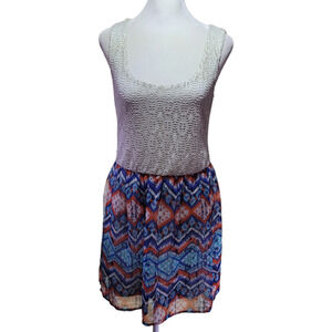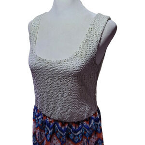 RED CAMEL Beachy Colorful Boho Dress Small White Lace Sleeveless Blue Graphic