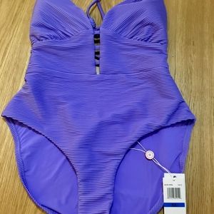 RED CARTER Riviera Sunset Plunge Ribbed One Piece