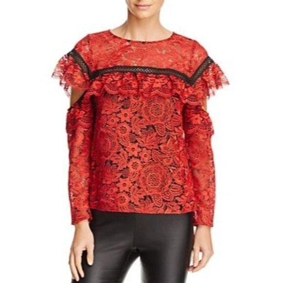 RED CARTER Sheffield Red Lace Top In Carmine Cold Shoulder Size XS