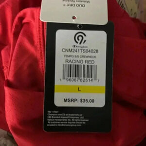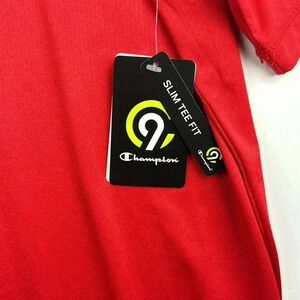 RED CHAMPION SHORT SLEEVE TEE NEW WITH TAGS SLIM FIT BREATHABLE DUO DRY STRECH SIDE SLITS