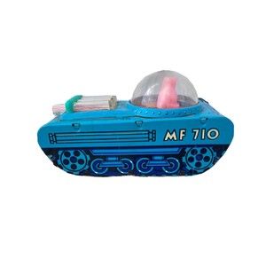 RED CHINA TIN FRICTION STARS-LANDING SPACE TANK MF 710. VINTAGE TOY.