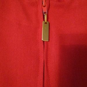 RED JACKET. Red cropped dress jacket, front zipper closure with gold pull, and lined. Size M.