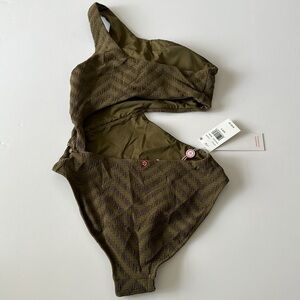 RED Carter Peri Asymmetrical One Piece Swimsuit Size Small Color Safari
