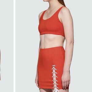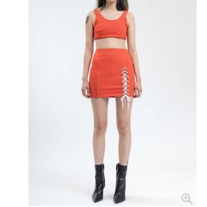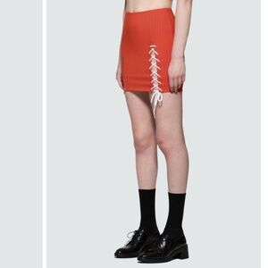 ♥️RED DANIELLE GUIZIO PINSTRIPE LACE UP ZIP SKIRT S