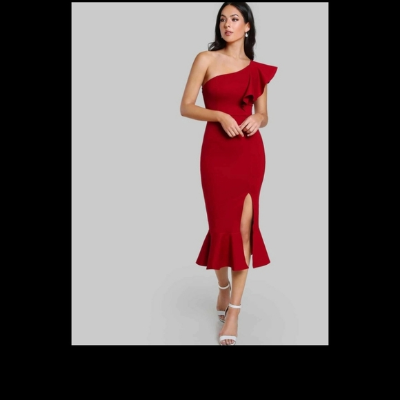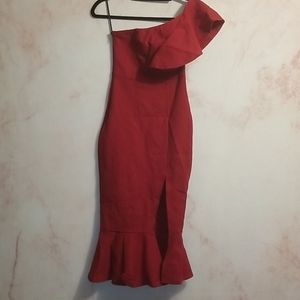 One shoulder red dress. Thick material. Perfect for a size 0-4