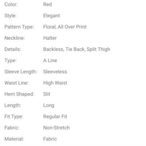 RED ELEGANT FLORAL, HALTER, BACKLESS, TIE BACK, SLIT, MAXI GOWN