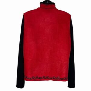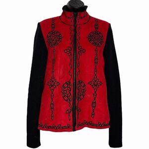 RED FAUX SUEDE EMBROIDERED JACKET COAT W SWEATER SLEEVES COLDWATER CREEK SIZE M
