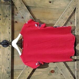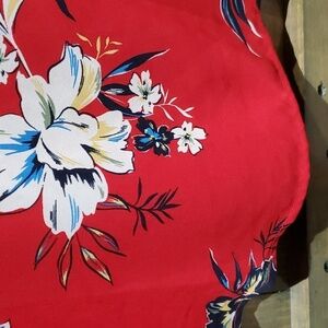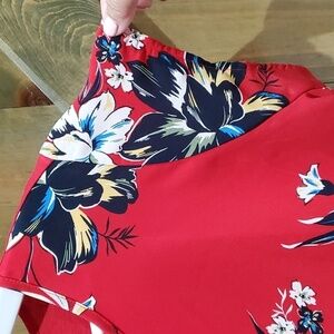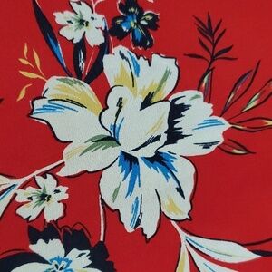 RED FLORAL BLOUSE SIZE LARGE CAREER BUSINESS CASUAL EVERYDAY OFFICE RESORT