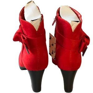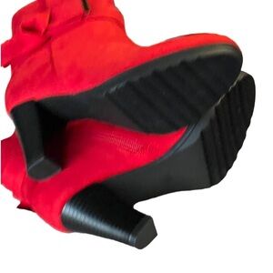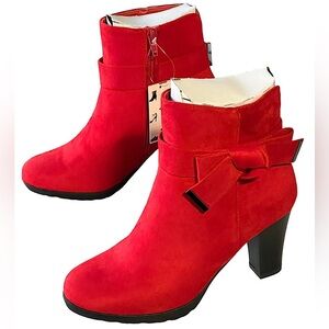 RED Faux Suede Chunky 3” Stacked Heel Ankle Booties Side Zip NEw in Box Size 5.5