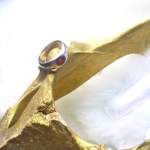 • \\The Lion's Den// Genuine solid precious Garnet + solid •925 Sterling silver ::: Handmade ::: hand polished ::: Like new ::: Size [6] ::: minimalist design for the modern era :: Approximately 7grams in weight•