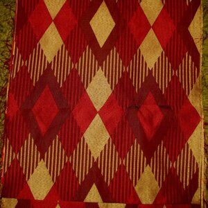 wonderful DESIGN of Large Diamond shapes in Red & Gold. Perfect for your projects. This is a woven silk brocade with no added backing and will ravel. Medium to heavy weight. Much prettier than the photos show. Perfect for totebags, headboards, & pillows.