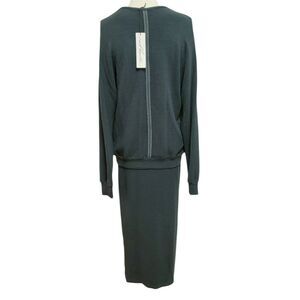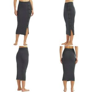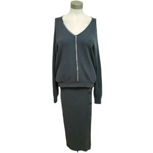 RED HAUTE 2 piece set ribbed stitched v-neck top midi pencil skirt black S NEW