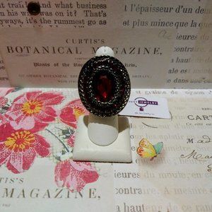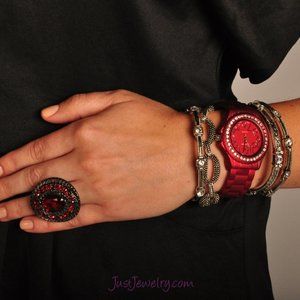 There's no doubt you'll be red hot in this hematite stretch ring with stop and look red crystals.