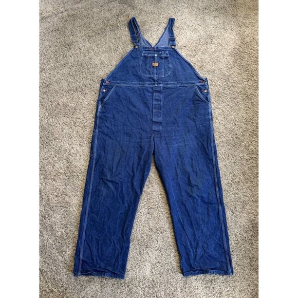 RED KAP Dark Denim Bib Overall Blue Jeans Cotton Carpenter Utility 56x32