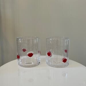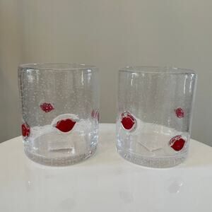 RED LIP Double Old Fashioned Glasses 14oz Set of 2 New