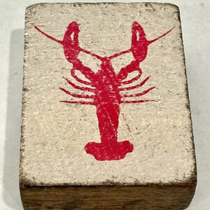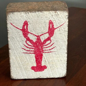 RED LOBSTER WOODEN BLOCK FARMHOUSE COUNTRY DECOR RED WHITE WOOD SIZE 6x4.5x2