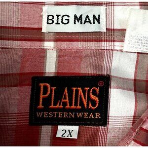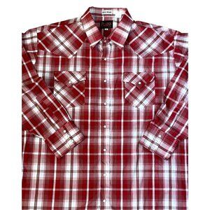 RED PLAID PEARL SNAP SHIRT SIZE 2X BIG MAN WESTERN ROCKABILLY PLAINS MENS