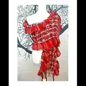 RED PLAID Scarf RECTANGLE Neck Wrap RUFFLE Edges Textured WRAP Shawl Farm Soft