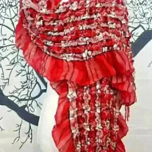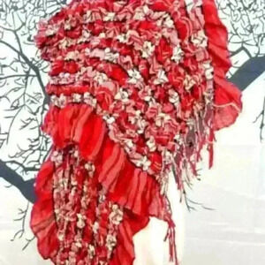 RED PLAID Neck TEXTURED with 3" Fringe Wrap Scarf Pashmina