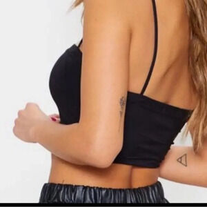 RED PRETTYLITTLETHING SLINKY STRAIGHT NECK SPAGHETTI STRAP CROP SIZE 2