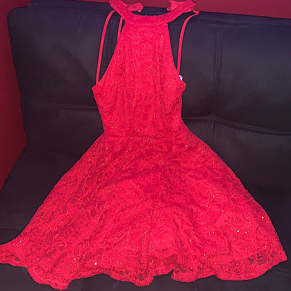 Red prom short dress, only been worn once, no rips, to tears no stains and is basically brand new.