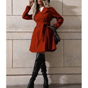 RED Preppy Womens Lapel Neck Double Breasted Belted Overcoat