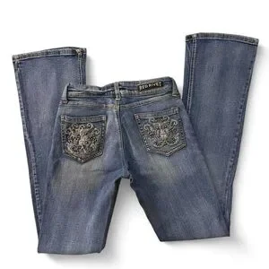 Y2K Red Rivet blue denim bootcut jeans #bootcutjeans #y2kfashion #retro #western