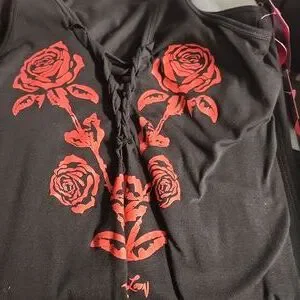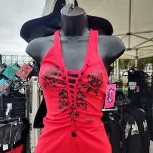 Embrace your adventurous spirit with the red roses cut amd braid front Tank Top. Perfect for casual outings, this top features a bold graphic design that stands out. Ideal for those who love a touch of edge in their wardrobe.