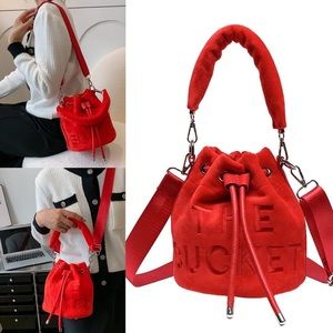 - RED SOFT MINI HOBO Bucket Bag 4 Women with Crossbody Strap & Drawstring bag