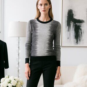 Black and White Cuddly Soft Crew Neck Knit Pullover Sweater