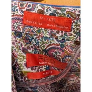 RED Saks Fifth Avenue Mens Trim Fit Dress Shirt 16 32/33 multicolor Paisley Cuff