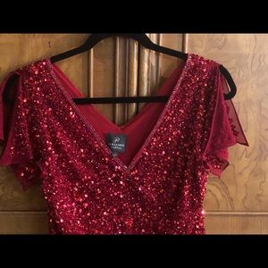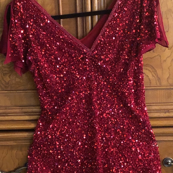 RED sequence and small bead top, with slit short sleeves and sheer lining